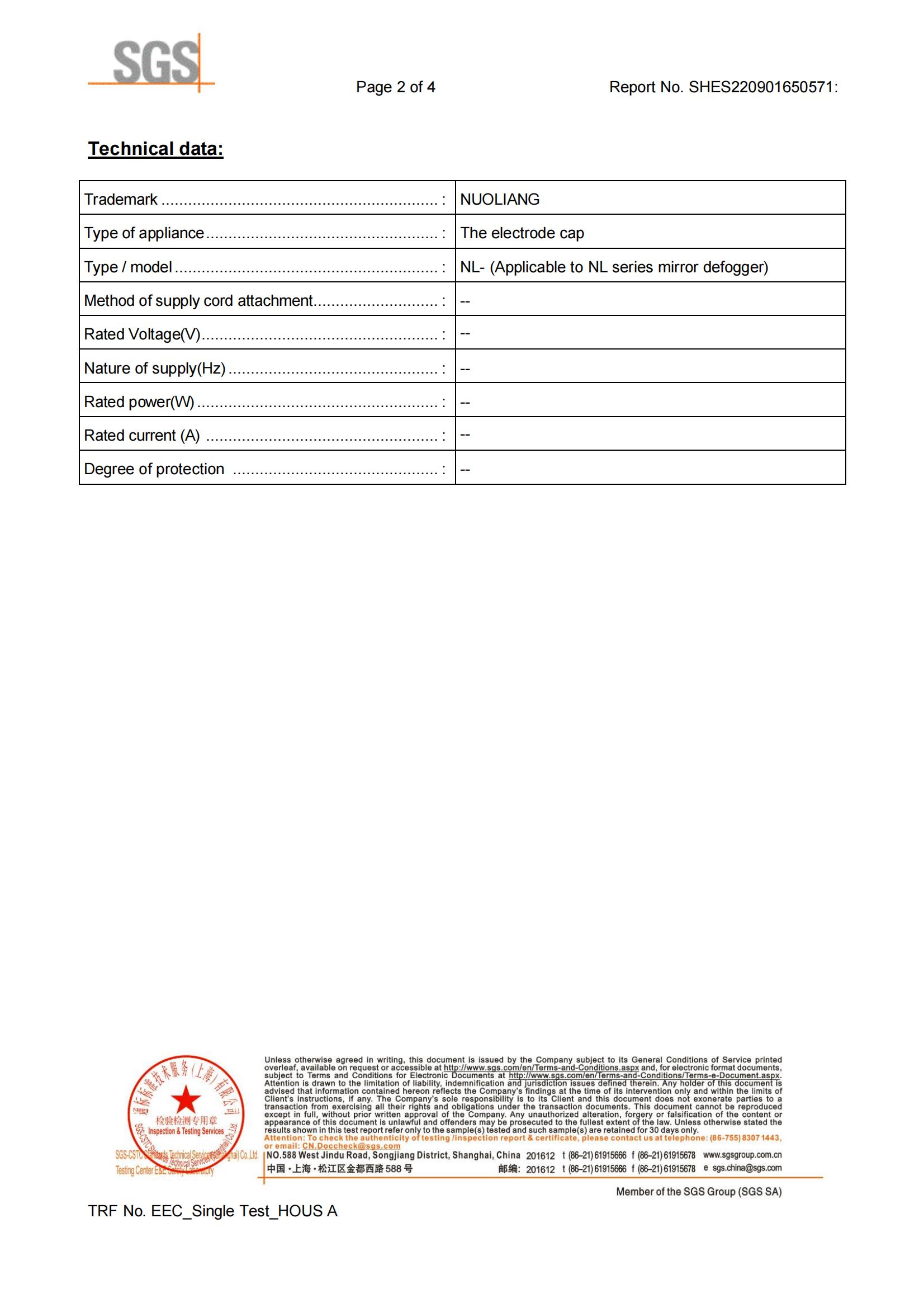 诺亮于2022.9.16更新电极盖耐灼热丝报告证书