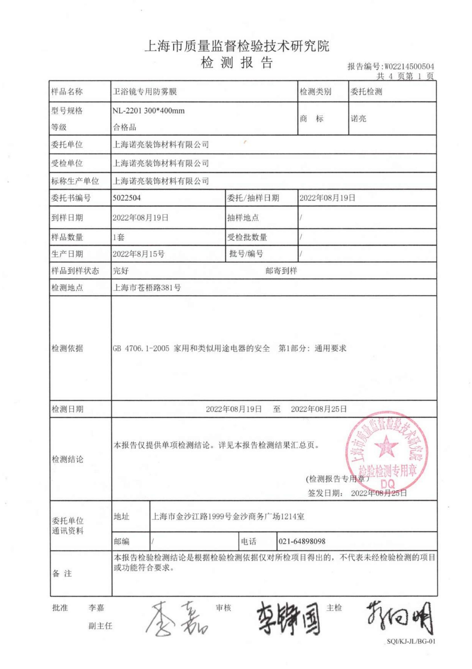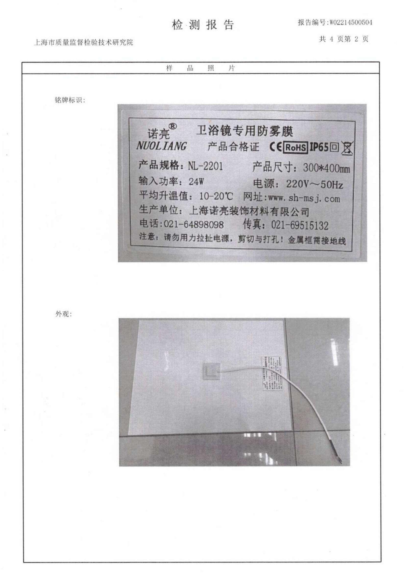 诺亮于2022.8.25更新国内220V检测报告证书
